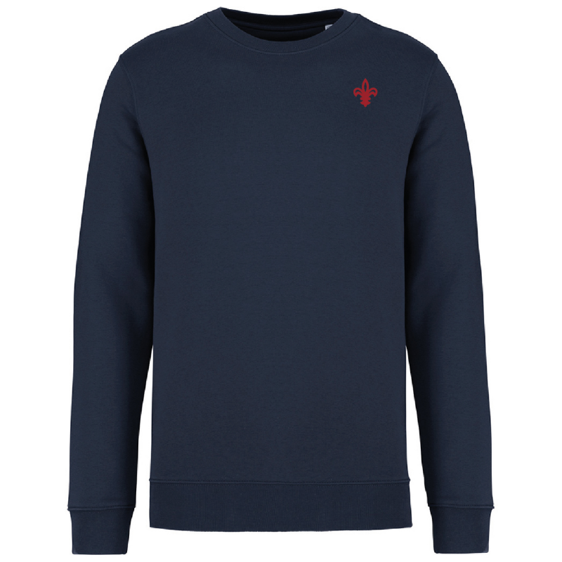Premium range Woking FC Fleur-De-Lis Navy sweatshirt with red embroidery.